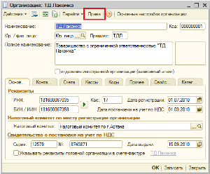 Объекты, описывающие организационную структуру предприятия, могут редактироваться только пользователями с ролями «Полные права» и «Главный бухгалтер». К таким объектам относятся справочники «Организации», «Кассы», «Подразделения организаций», «Помещения», а также регистры сведений «Ответственные лица организаций» и «Ответственные лица».