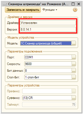 После этого необходимо сохранить указанные настройки и установленное оборудование в информационной базе при помощи кнопки «Записать и закрыть». На этом настройка сканера штрих-кодов окончена.