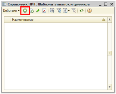 Откроется справочник «ПИТ: Шаблоны этикеток и ценников». В первую очередь, необходимо создать шаблон этикетки для тех товаров, для которых штрих-код не указан. Для добавления нового шаблона необходимо воспользоваться кнопкой «Добавить», расположенной на командной панели списка справочника.