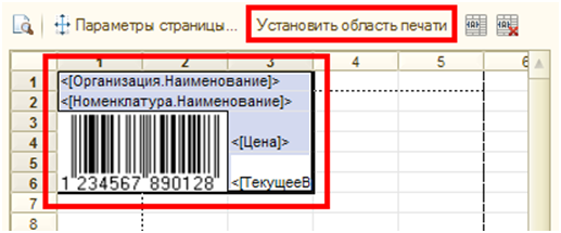 После этого область выделится пунктирными линиями. Данные линии и будут границей печати ценника.