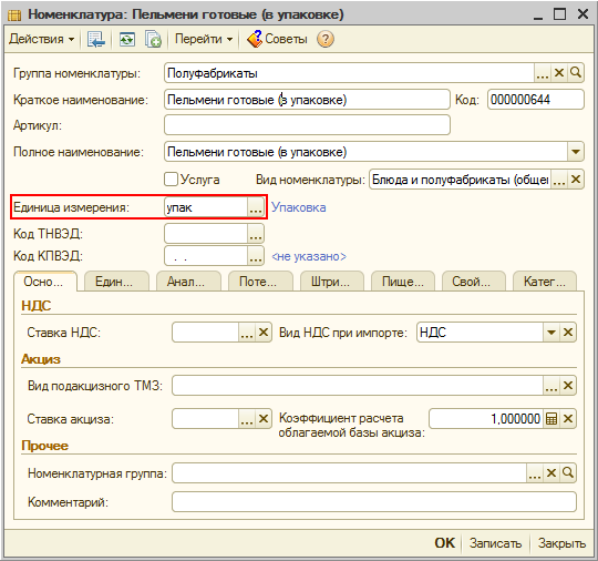 Пельмени (готовые в упаковке) - это пельмени для перепродажи, они будут ингредиентами в рецептуре приготовления блюда «Пельмени», базовая единица измерения – упаковка.