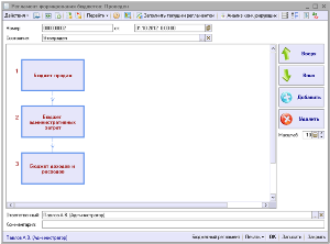 Бюджеты, формируемые параллельно, находятся на одной линии. Добавление бюджетов в схему регламента, удаление выделенных из схемы, перемещение выделенного бюджета на уровень выше/ниже производится при помощи кнопок, расположенных справа от поля схемы.