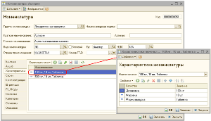 Установленное значение «Использовать индивидуальные для номенклатуры» предоставляет возможность указания индивидуальных характеристик для каждого лекарственного средства. При этом количество характеристик лекарственного средства неограниченно. Характеристики заполняются в справочнике «Характеристики номенклатуры», подчиненном справочнику «Номенклатура». Подчиненность справочника означает, что список характеристик определяется для каждой номенклатурной позиции индивидуально и может использоваться только вместе с ней.