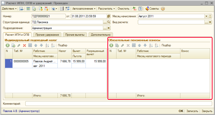При таком оформлении при расчете налогов в документах «Расчет ИПН, ОПВ и удержаний» и «Расчет СН и СО» рассчитаются суммы налогов, взносов и отчислений в соответствии с налоговым законодательством.