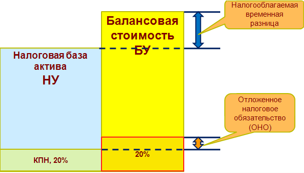 Когда балансовая сумма актива превышает его налоговую базу — сумма налогооблагаемых экономических выгод в будущем будет превышать величину, вычитание которой разрешается для целей налогообложения. Это приведет к увеличению расходов по налогу на прибыль. Такая разница является налогооблагаемой временной разницей, а обязательство уплатить возникающие налоги на прибыль в будущих периодах является отложенным налоговым обязательством.