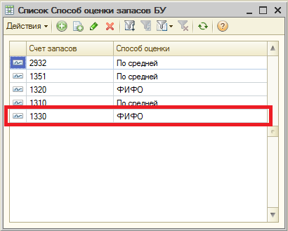 В том случае, если для каких-либо счетов учета ТМЗ установлен способ оценки запасов, отличный от способа «По средней», тогда для этого счета в плане счетов будет автоматически добавлено третье субконто «Партия».