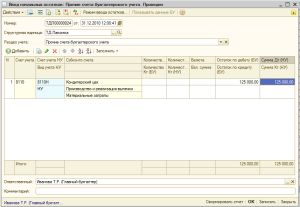 Ввод начальных остатков по незавершенному производству
