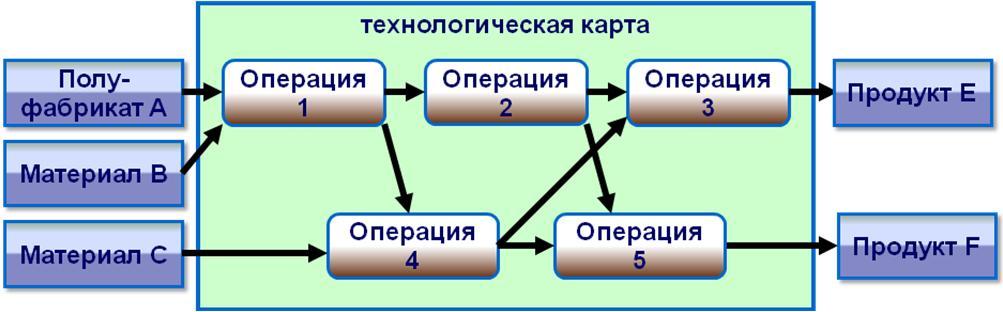 Кроме планирования материальных потоков в производстве планируются и производственные процессы. Для этого используются технологические карты. Назначение технологических карт — хранение и предоставление информации о схеме (маршруте) производства изделий: