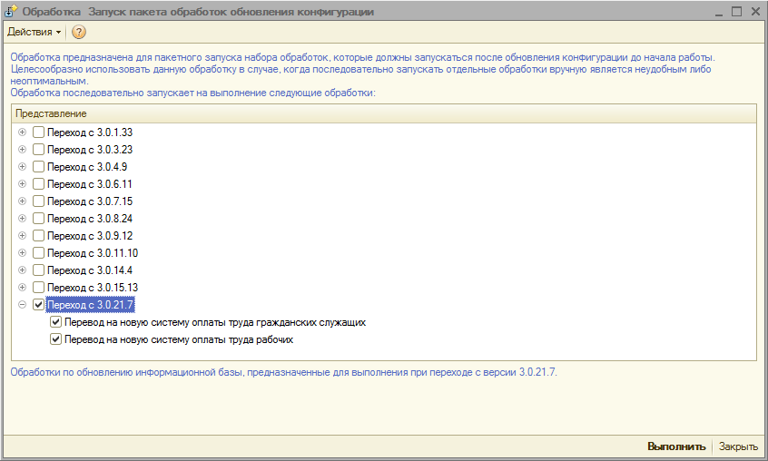 В релиз 3.0.22 включены обработки: «Перевод на новую систему оплаты труда гражданских служащих» и «Перевод на новую систему оплаты труда рабочих», предназначенные для обеспечения автоматизированного перевода на новую систему оплаты труда гражданских служащих, работников организаций, содержащихся за счет средств государственного бюджета, работников казенных предприятий в соответствии с Постановлением Правительства Республики Казахстан от 27.11.2015 г. № 957 «О внесении изменений и дополнения в Постановление Правительства Республики Казахстан от 29.12.2007г. № 1400 «О системе оплаты труда гражданских служащих, работников организаций, содержащихся за счет средств государственного бюджета, работников казенных предприятий».