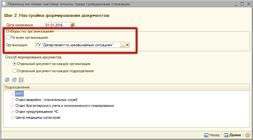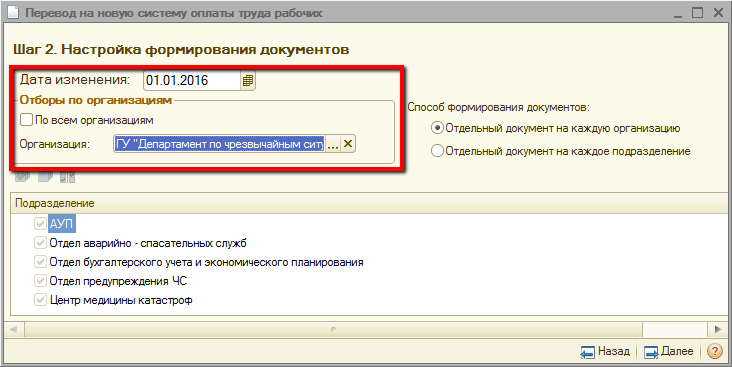 После установки необходимых настроек для перехода к следующему шагу необходимо нажать кнопку «Далее». Для возврата на предыдущий шаг необходимо нажать кнопку «Назад».