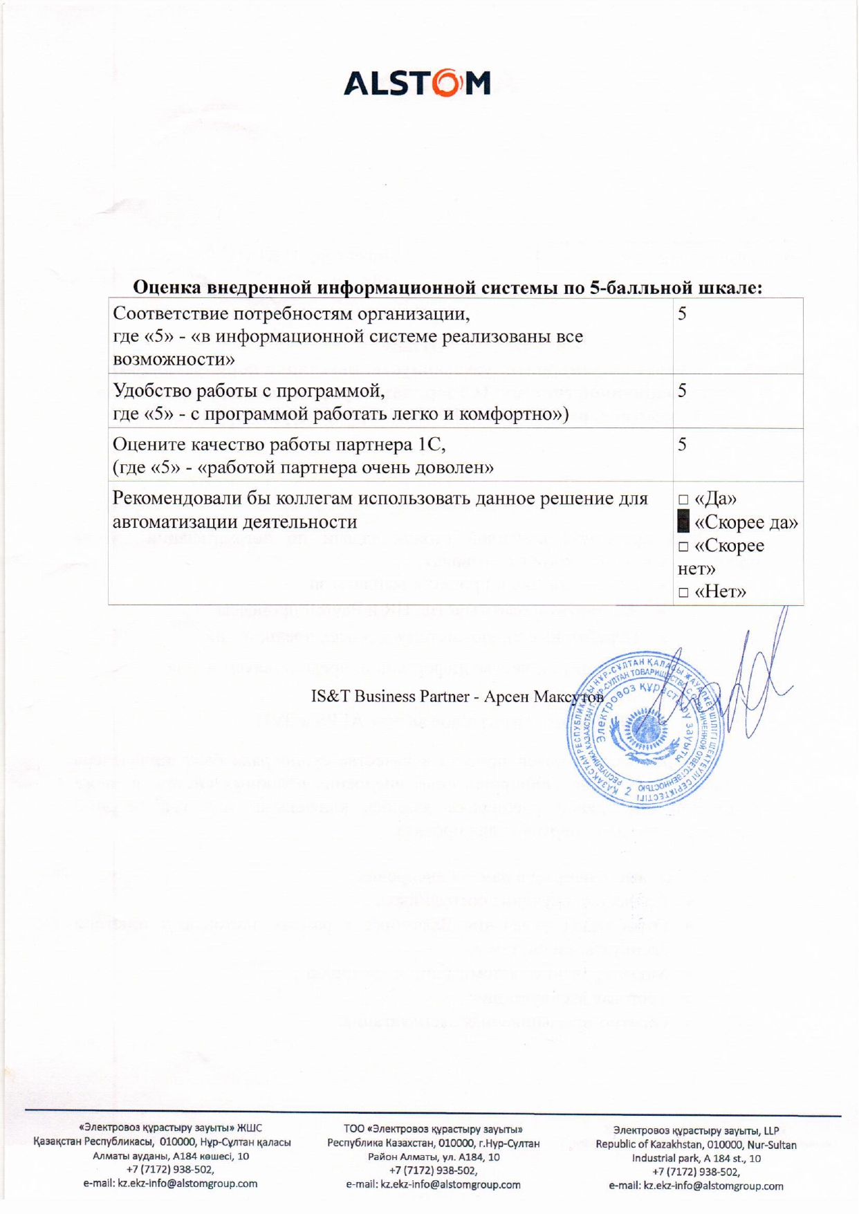 Общая численность персонала в группе компаний 978 человек (ТОО «ЭКЗ Сервис» – 143 чел., ТОО «Электровоз құрастыру зауыты» – 711 чел., ТОО «Alstom Kazakhstan» – 124 чел.)