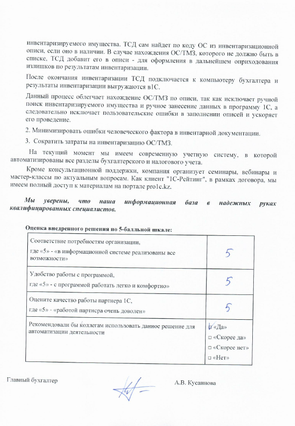 Сократились затраты на инвентаризацию ОС/ТМЗ. На текущий момент мы имеем современную учетную систему, в которой автоматизированы все разделы бухгалтерского и налогового учета.