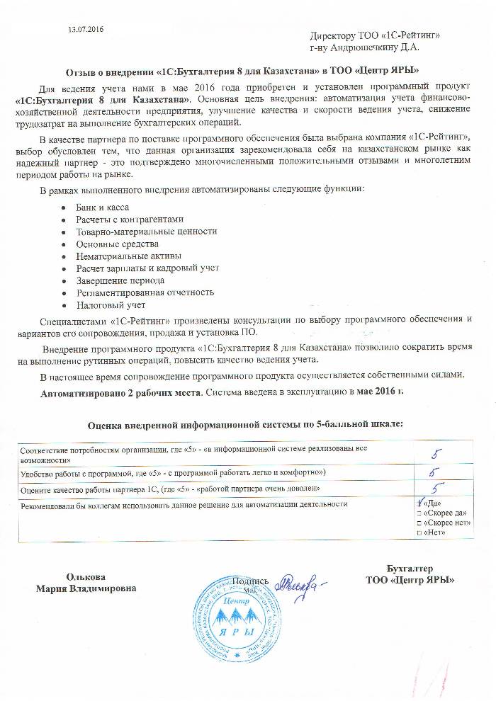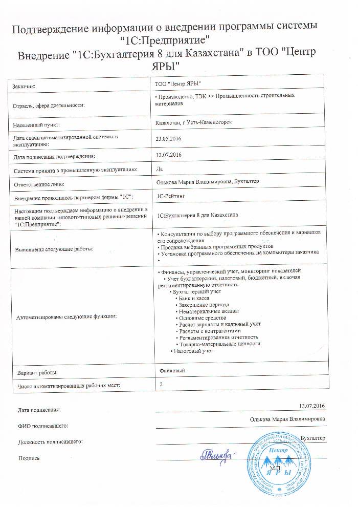 | Внедренное типовое решение: | 1С:Бухгалтерия 8 для Казахстана |