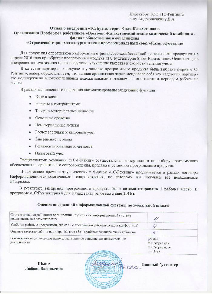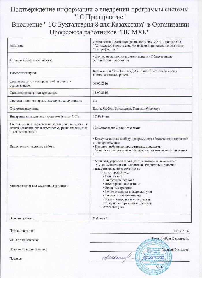 | Внедренное типовое решение: | 1С:Бухгалтерия 8 для Казахстан |