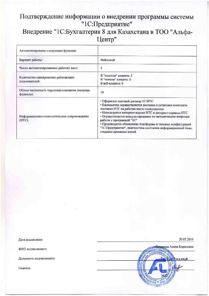 - Оформлен платный договор 1С:ИТС