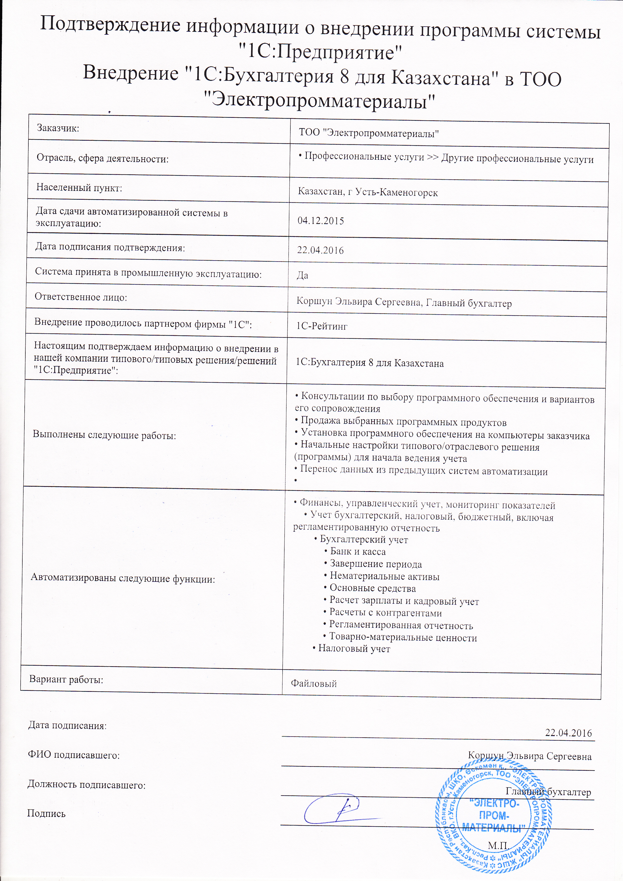 | Внедренное типовое решение: |