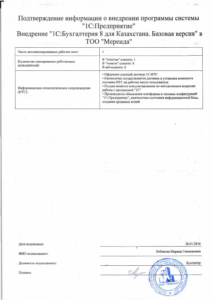 - Оформлен платный договор 1С:ИТС