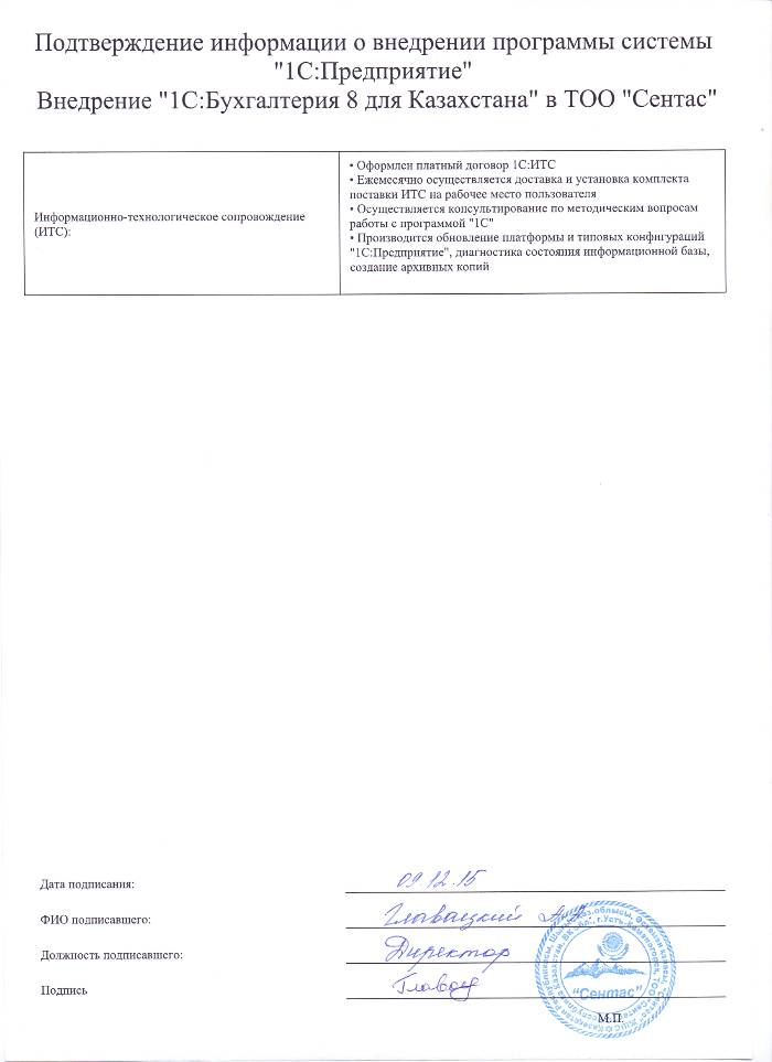 | Внедренное типовое решение: | 1С:Бухгалтерия 8 для Казахстана |