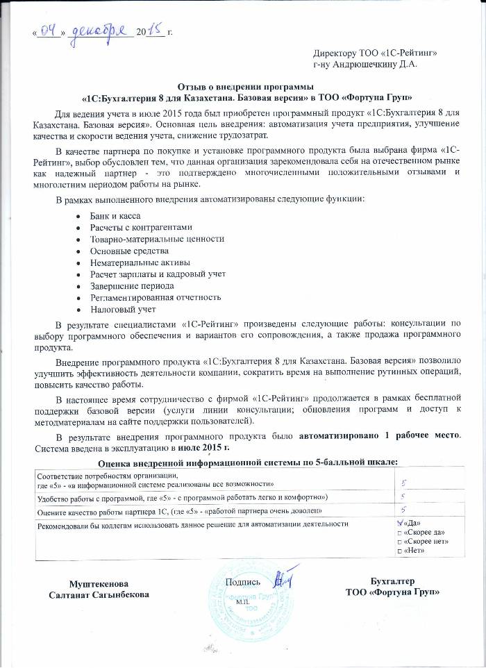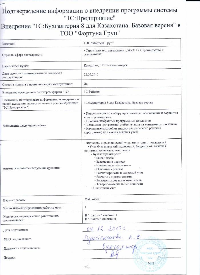 | Внедренное типовое решение: | 1С:Бухгалтерия 8 для Казахстана. Базовая версия |