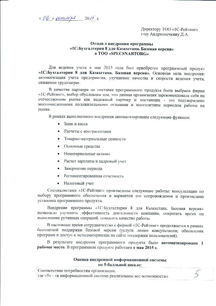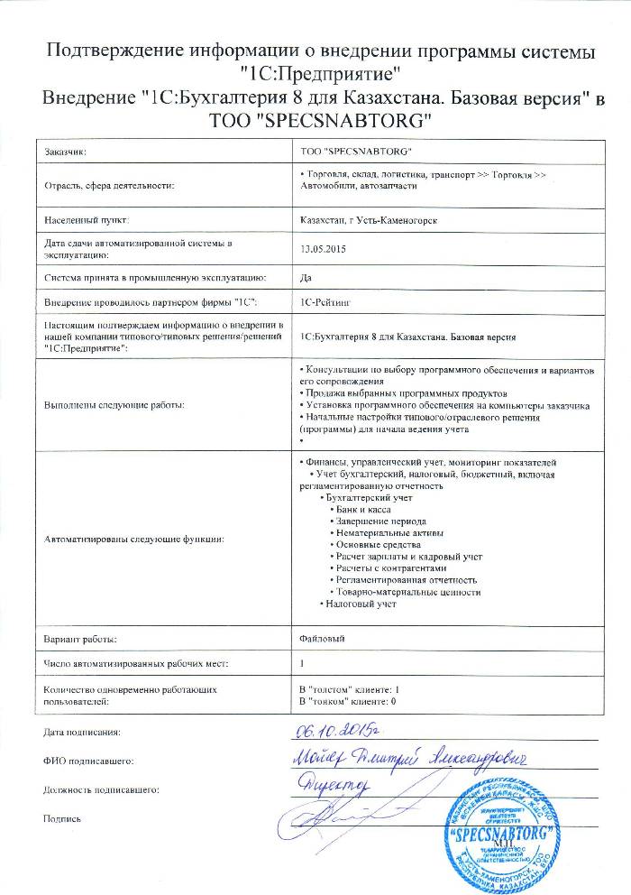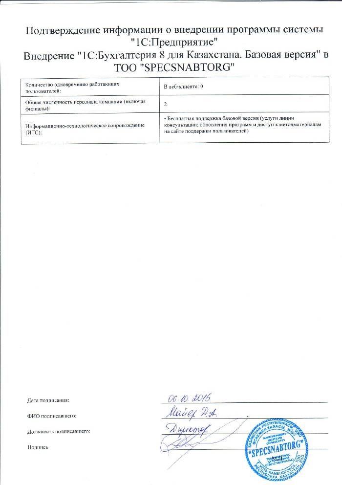 | Внедренное типовое решение: | 1С:Бухгалтерия 8 для Казахстана. Базовая версия |