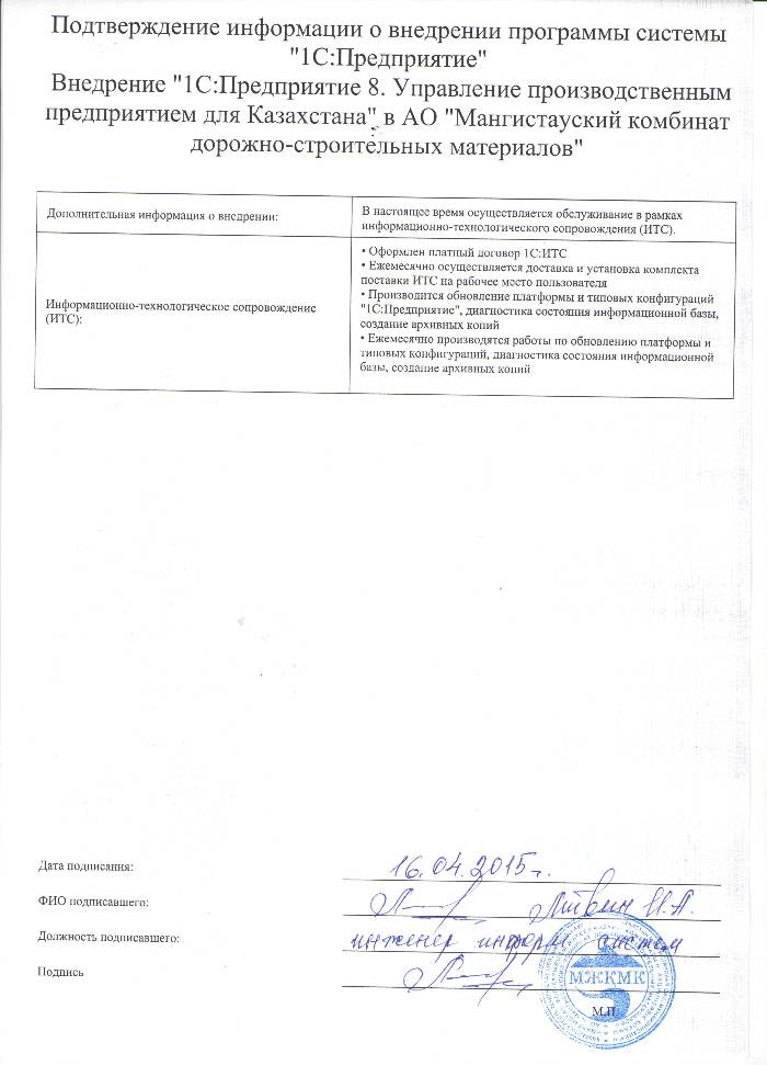 Внедрение программного продукта «1С:Управление производственным предприятием для Казахстана» выполняется силами ИТ-специалистов компании-заказчика.