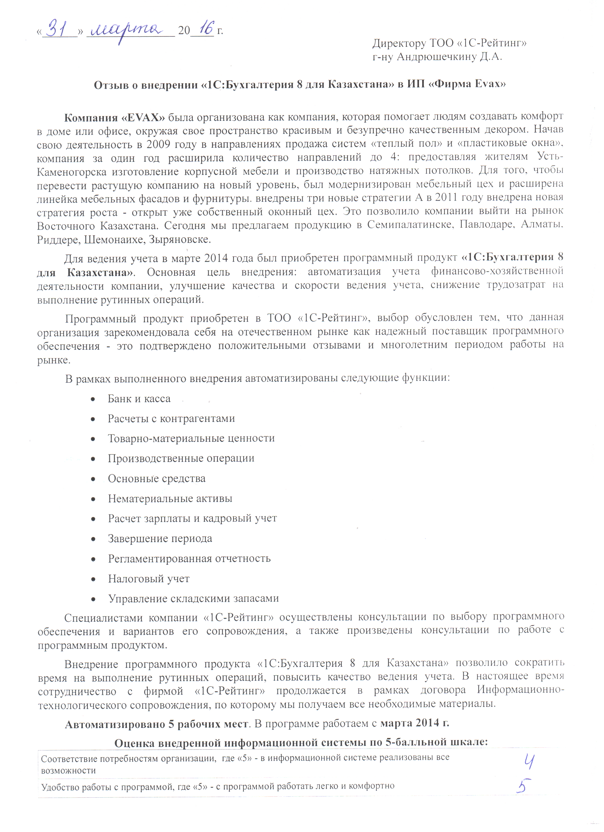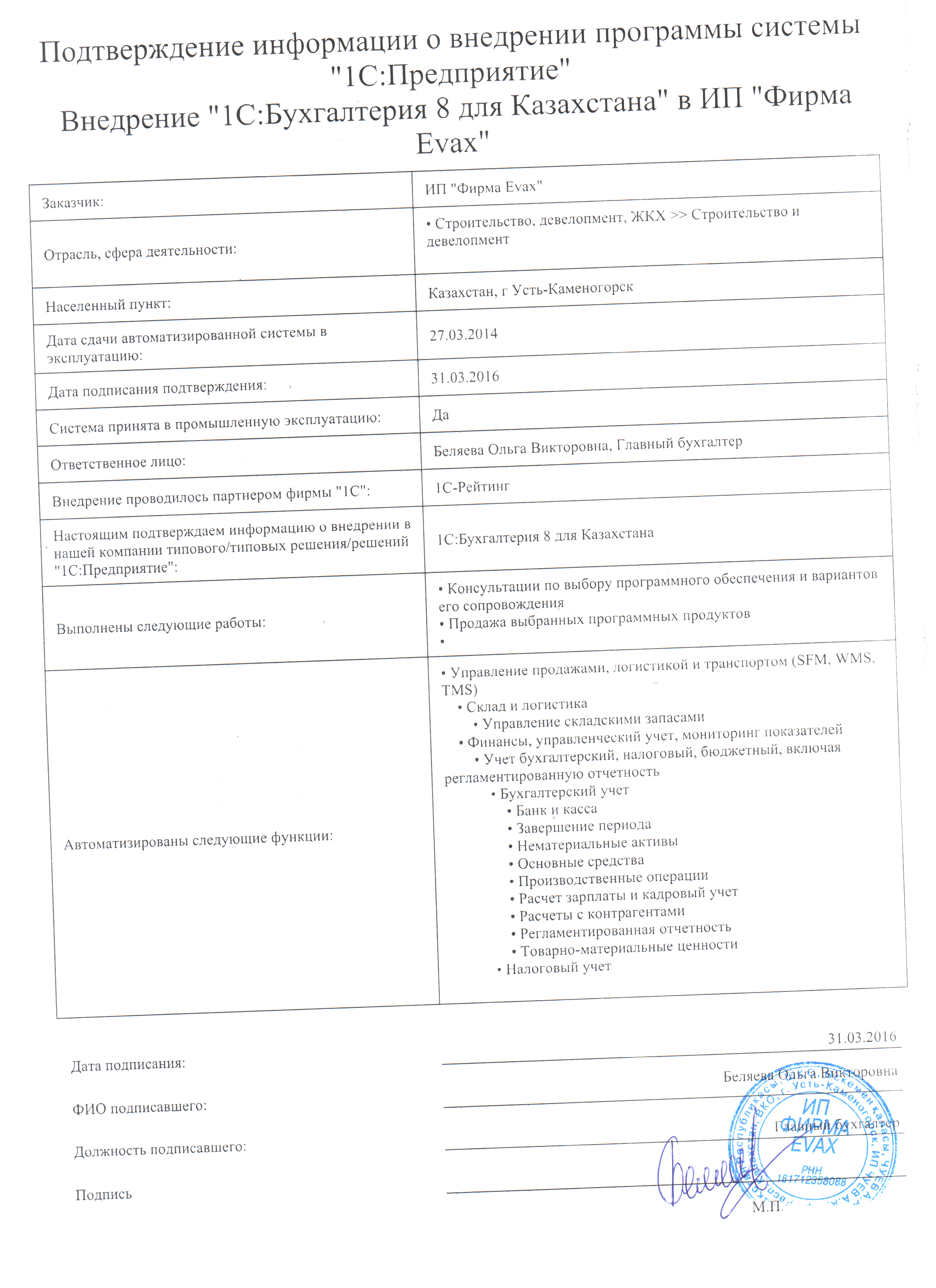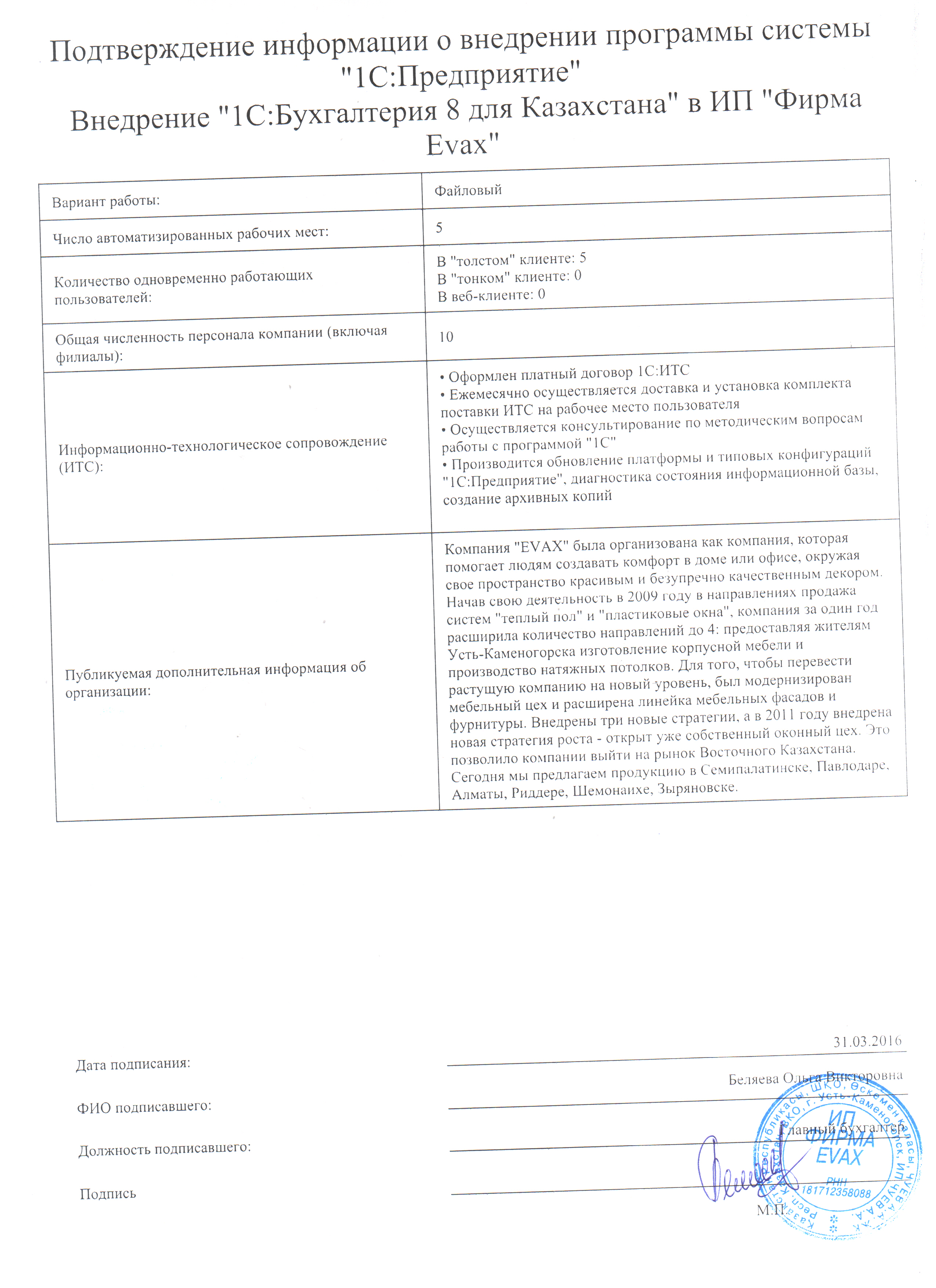 | Внедренное типовое решение: | 1С:Бухгалтерия 8 для Казахстана |