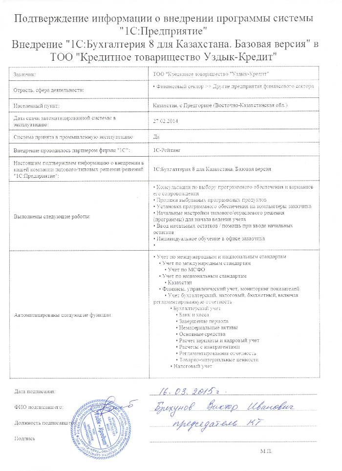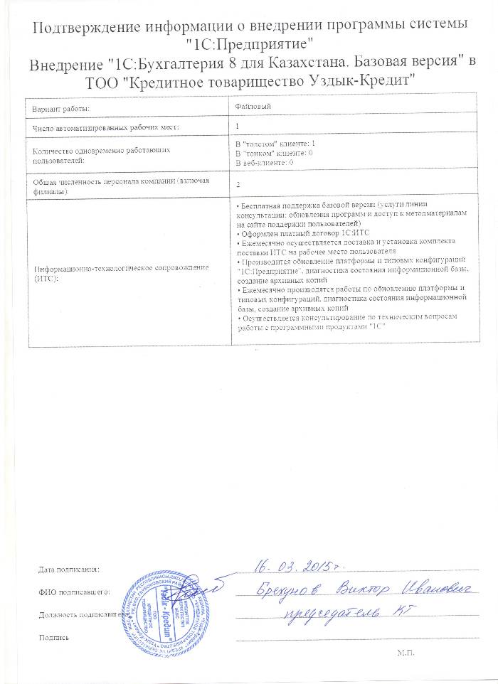 | Внедренное типовое решение: | 1С:Бухгалтерия 8 для Казахстана. Базовая версия |