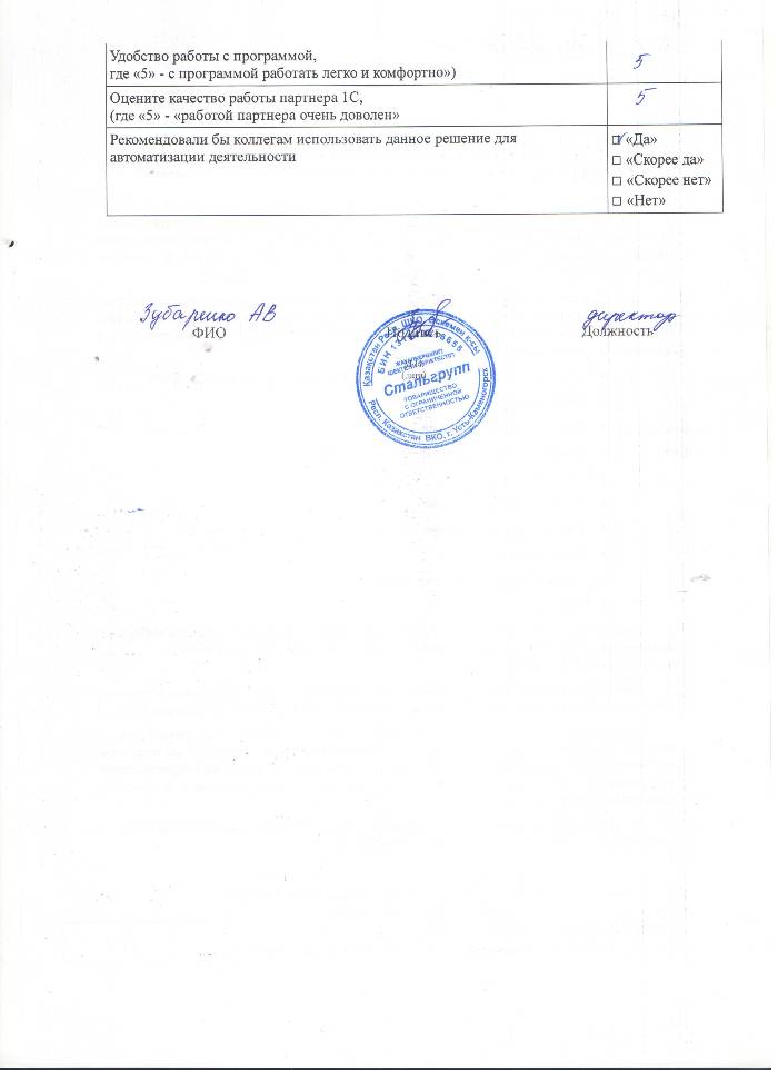 - Ежемесячно производятся работы по обновлению платформы и типовых конфигураций, диагностика состояния информационной базы, создание архивных копий