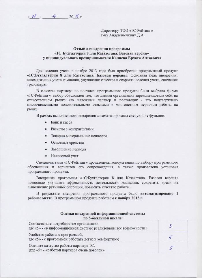 | Внедренное типовое решение: | 1С:Бухгалтерия 8 для Казахстана. Базовая версия |