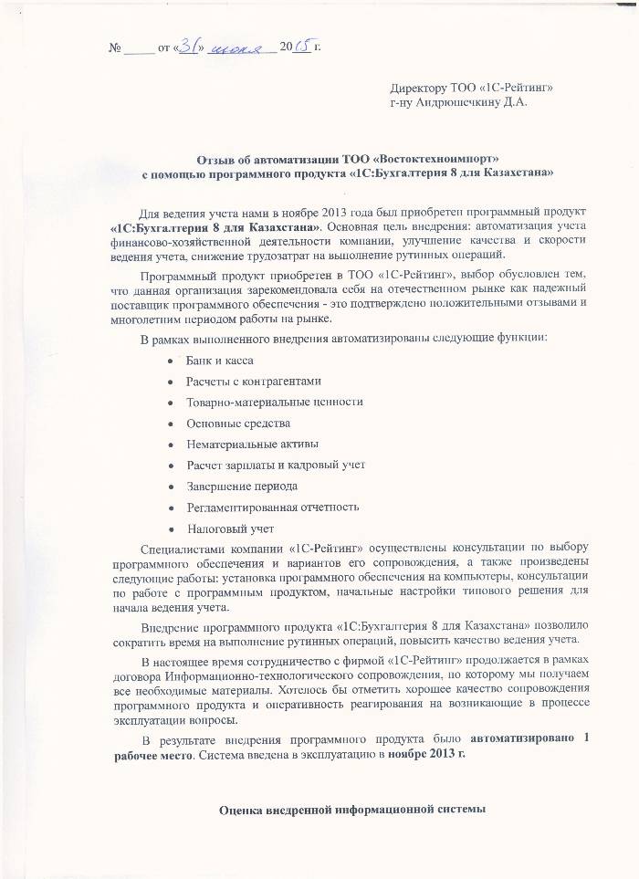 | Внедренное типовое решение: | 1С:Бухгалтерия 8 для Казахстана |