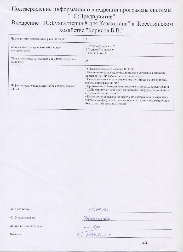 | Внедренное типовое решение: | 1С:Бухгалтерия 8 для Казахстана |