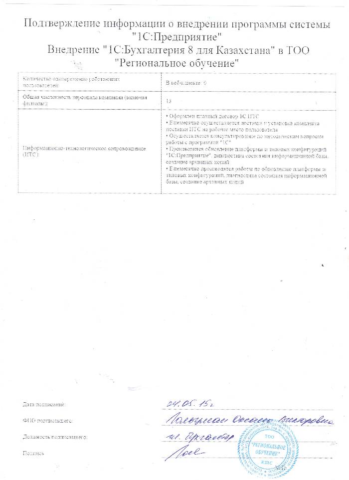 | Внедренное типовое решение: | 1С:Бухгалтерия 8 для Казахстана |
