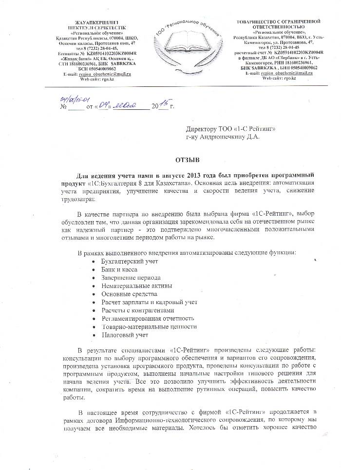 ТОО Региональное обучение