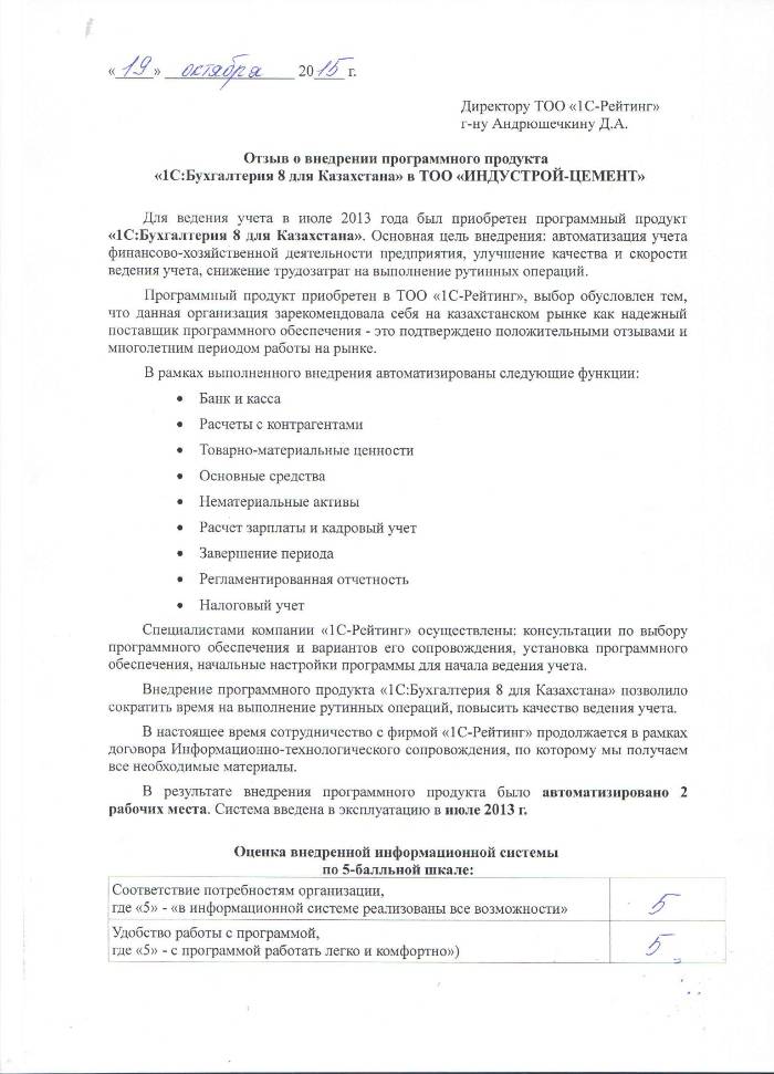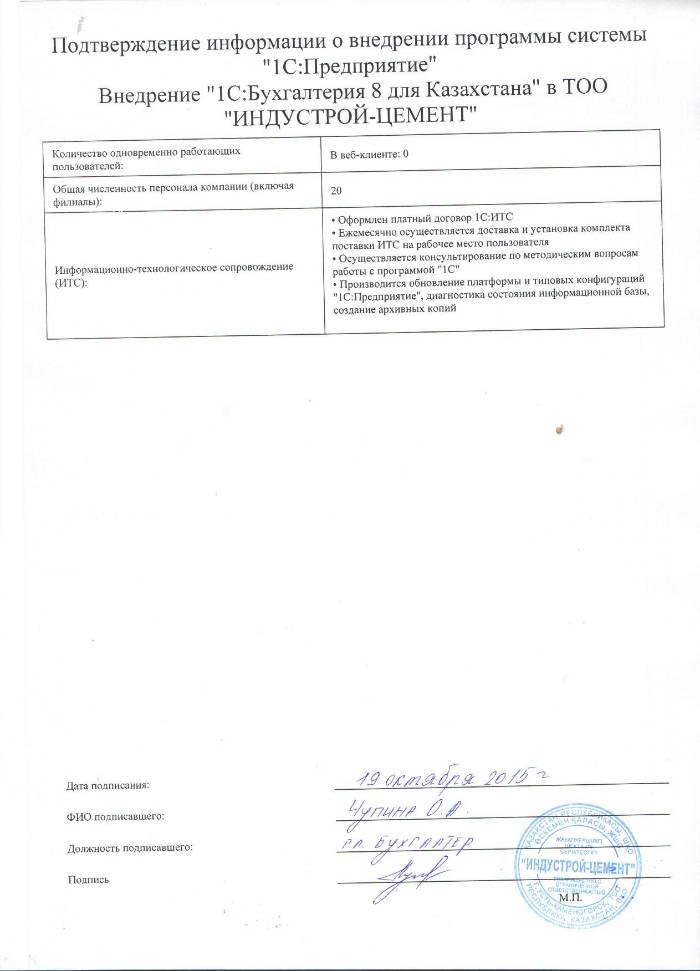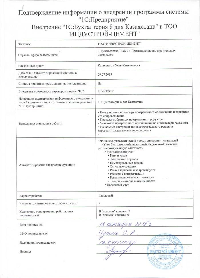 | Внедренное типовое решение: | 1С:Бухгалтерия 8 для Казахстана |