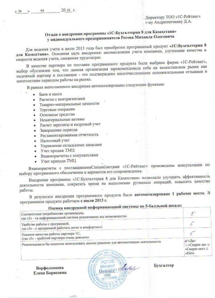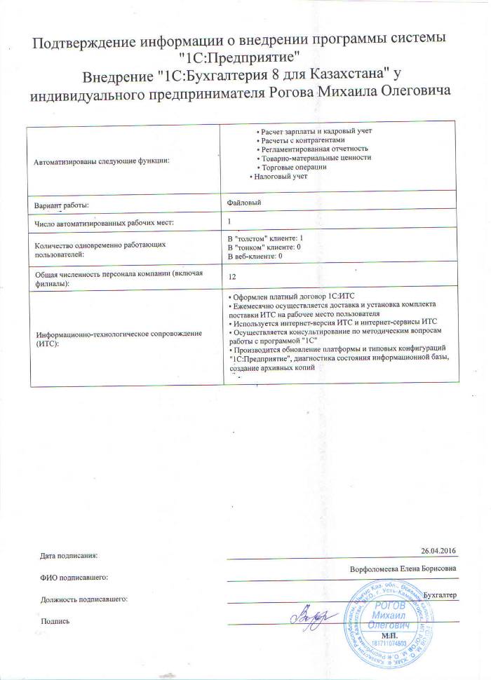 | Внедренное типовое решение: | 1С:Бухгалтерия 8 для Казахстана |