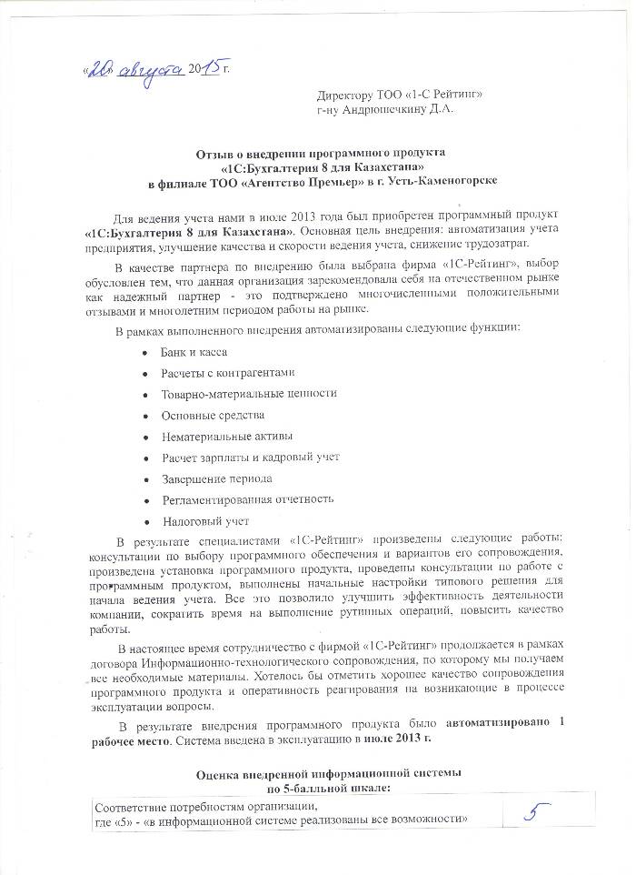 Филиал ТОО «Агентство Премьер» в г. Усть-Каменогорск