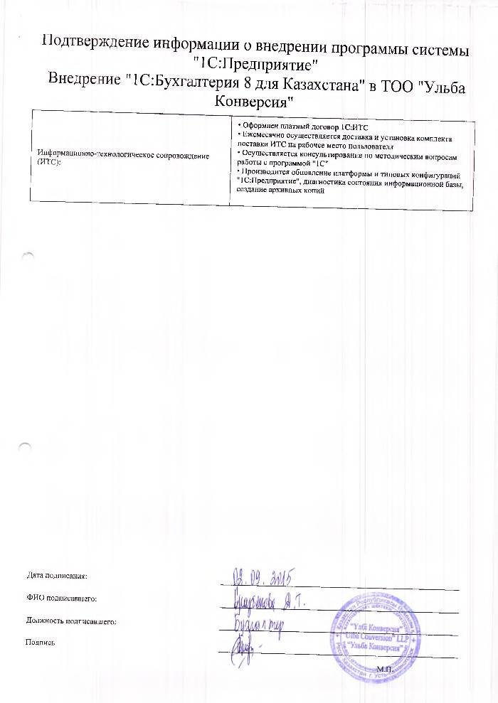 | Внедренное типовое решение: | 1С:Бухгалтерия 8 для Казахстана |