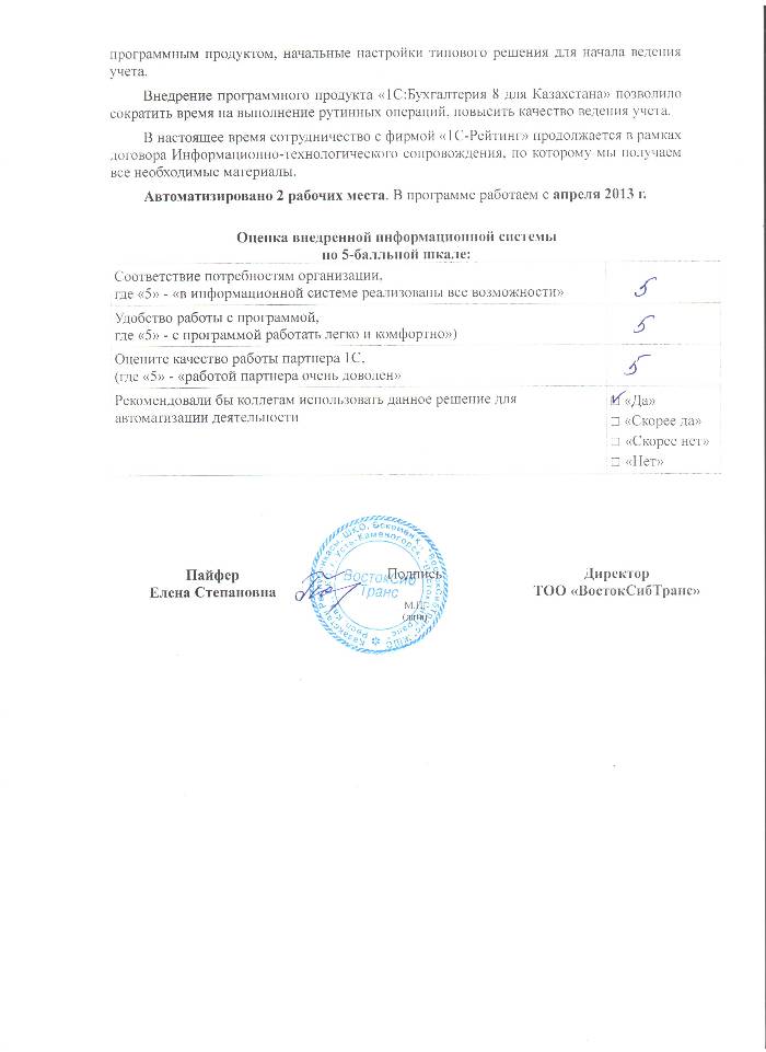 | Внедренное типовое решение: | 1С:Бухгалтерия 8 для Казахстана |