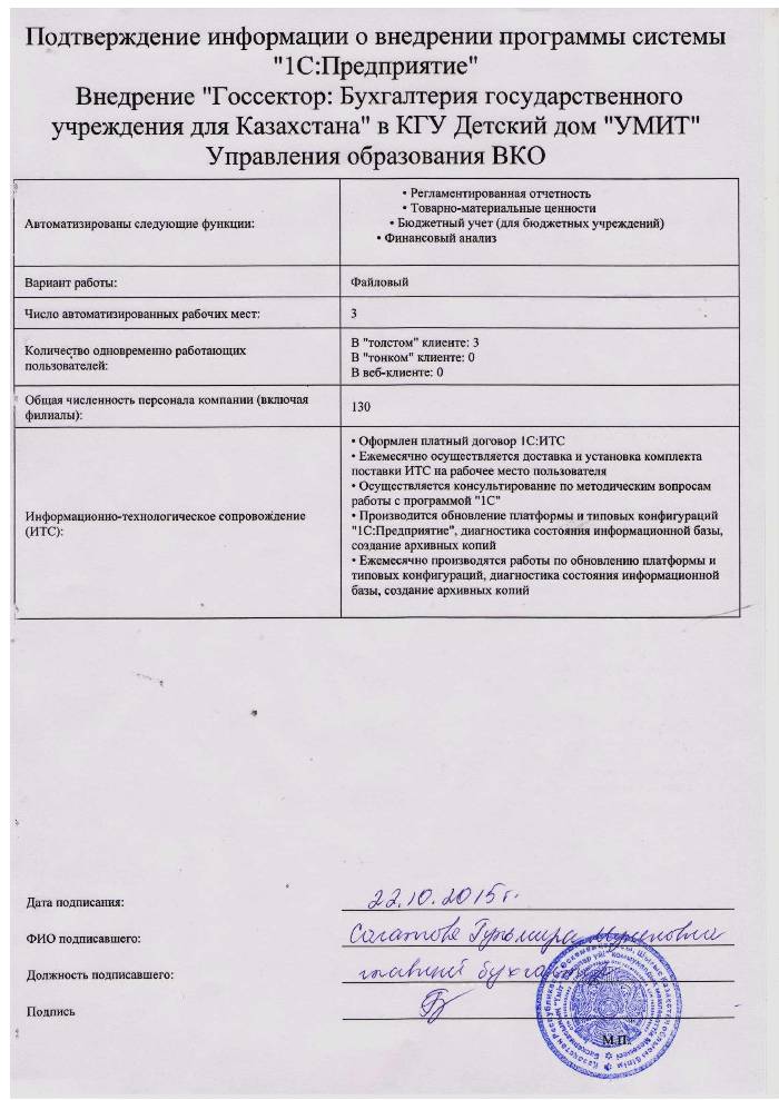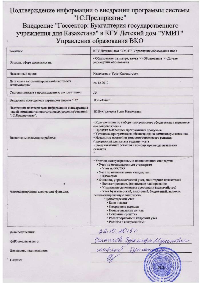 | Внедренное отраслевое решение: | Госсектор: Бухгалтерия государственного учреждения для Казахстана |