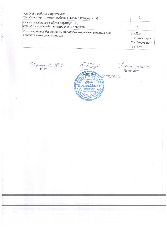 - Осуществляется консультирование по методическим вопросам работы с программой 1С