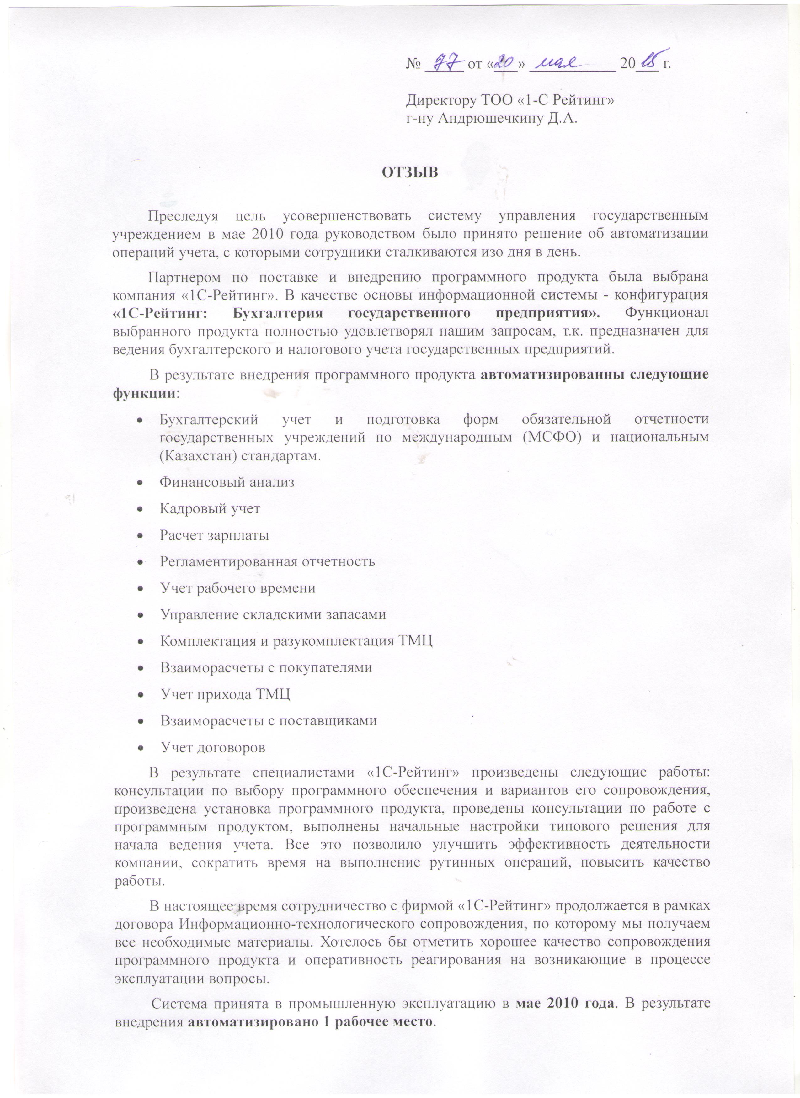 | Внедренное отраслевое решение: | 1С-Рейтинг: Бухгалтерия государственного предприятия |