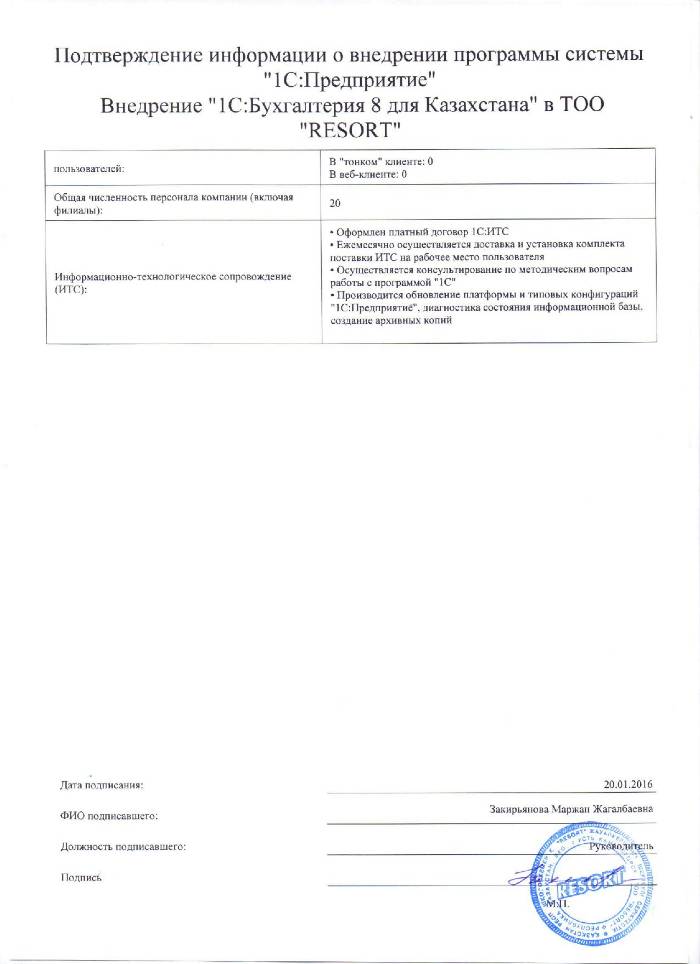 | Внедренное типовое решение: | 1С:Бухгалтерия 8 для Казахстана |