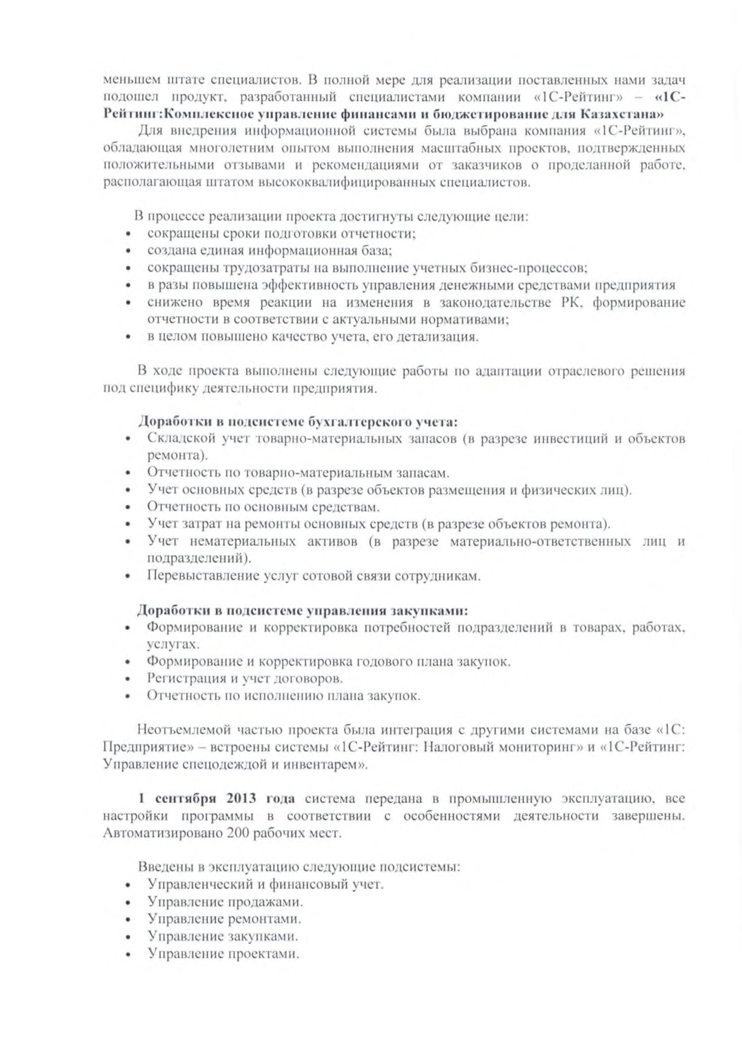 | Внедренные отраслевые решения: | 1С-Рейтинг: Комплексное управление финансами и бюджетирование для Казахстана