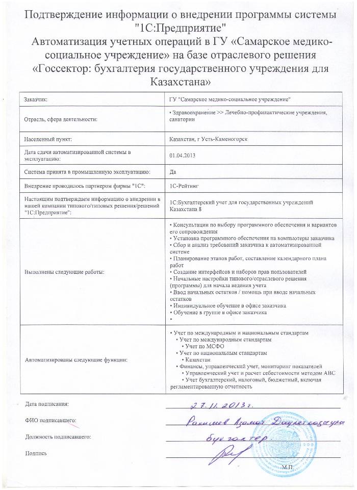 | Внедренное отраслевое решение: | Госсектор: Бухгалтерия государственного учреждения для Казахстана |