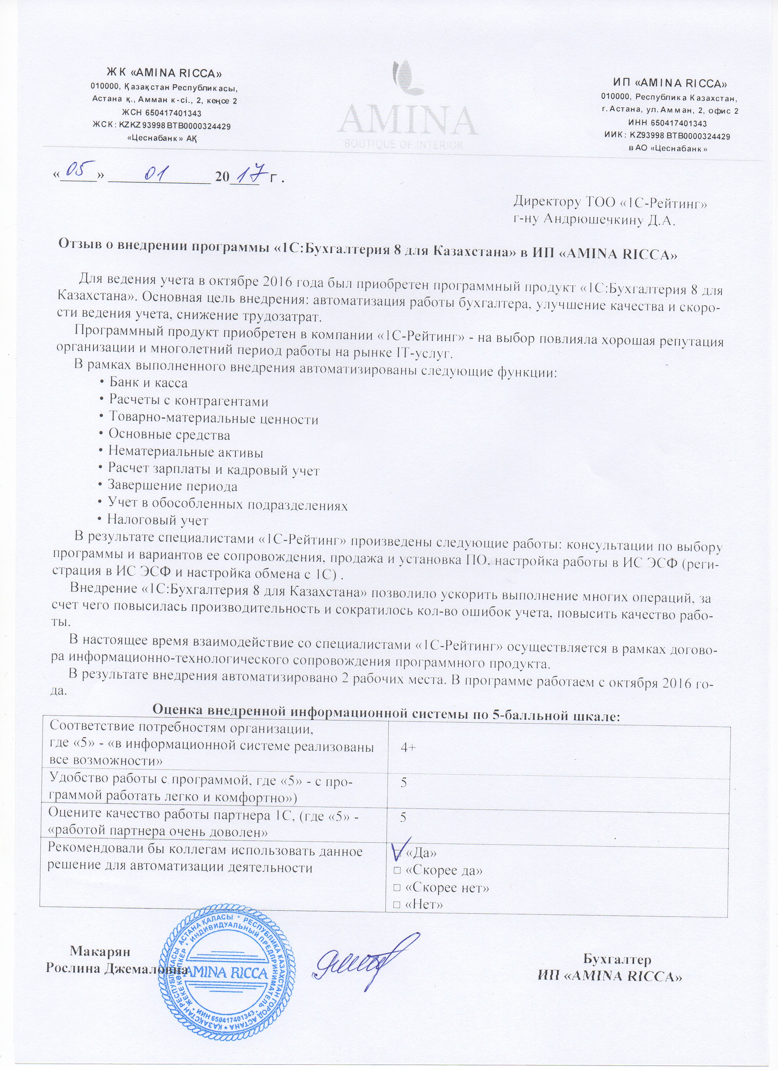 | Внедренное типовое решение: | 1С:Бухгалтерия 8 для Казахстана |