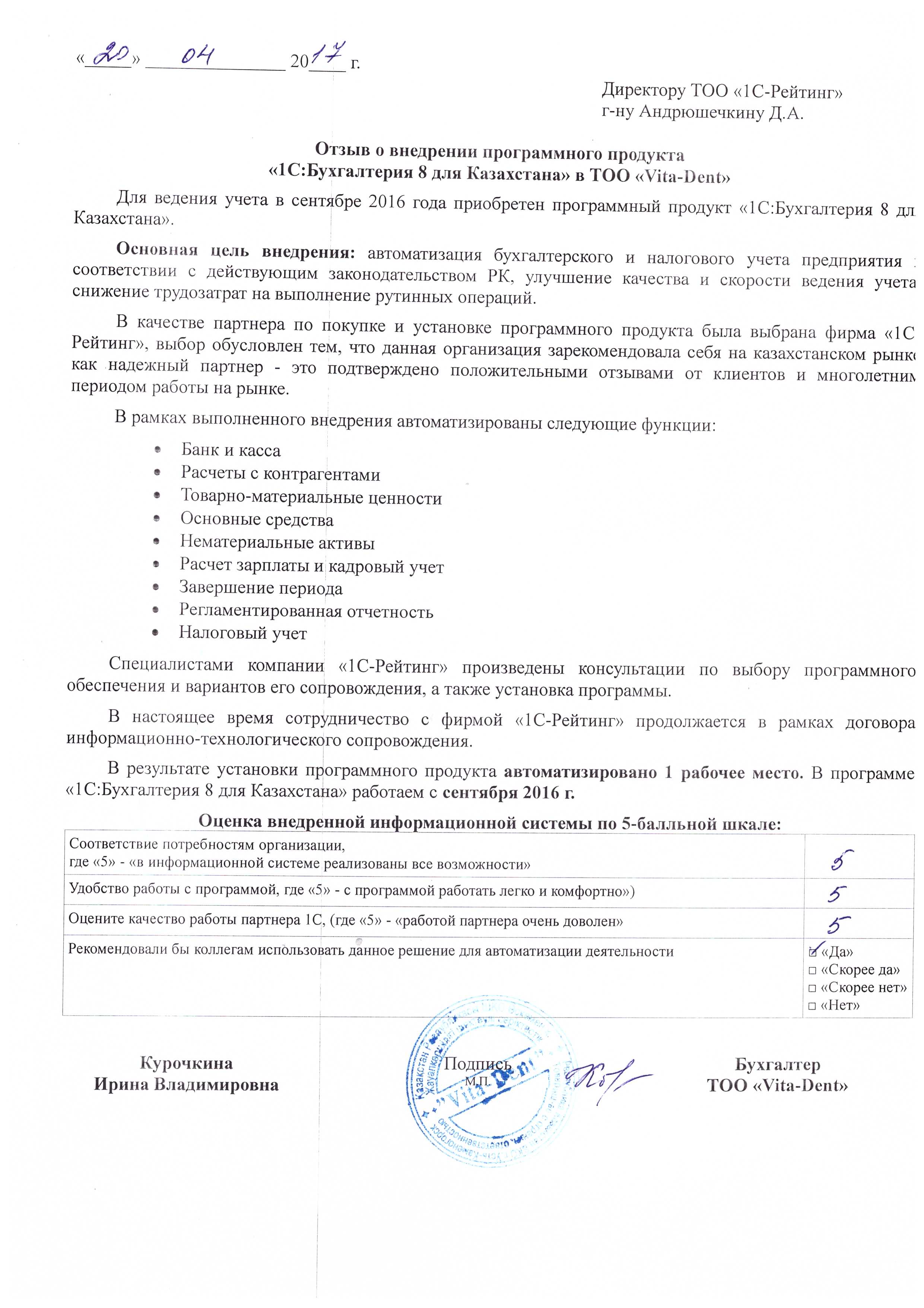 | Внедренное типовое решение: | 1С:Бухгалтерия 8 для Казахстана |