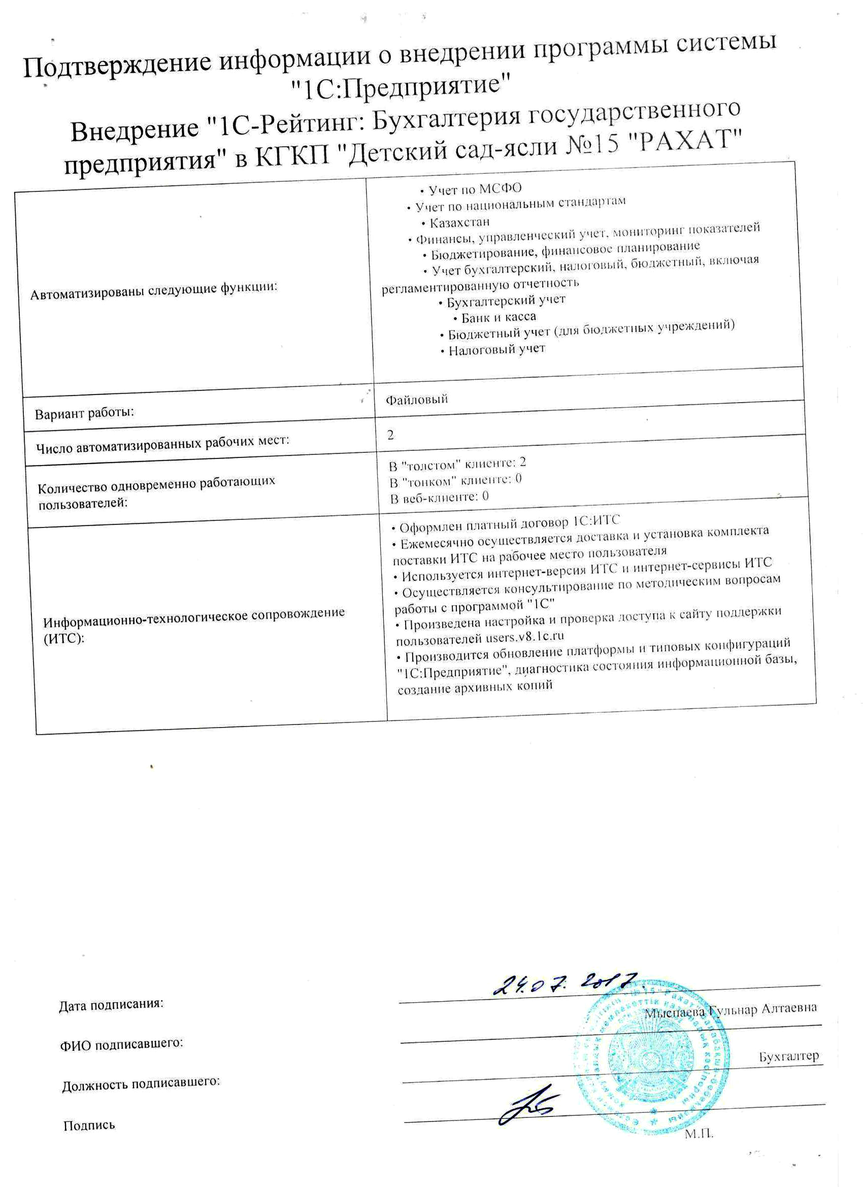 | Внедренное отраслевое решение: | 1С-Рейтинг: Бухгалтерия государственного предприятия |