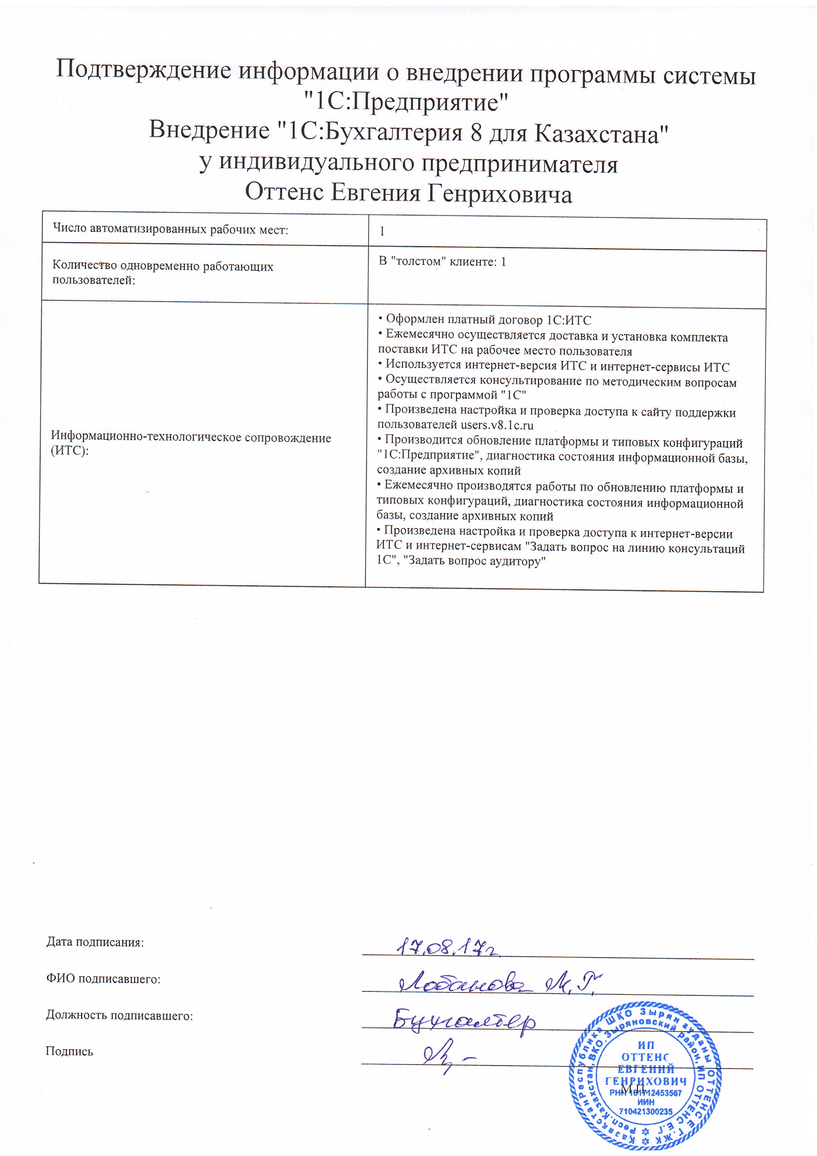 - Оформлен платный договор 1С:ИТС