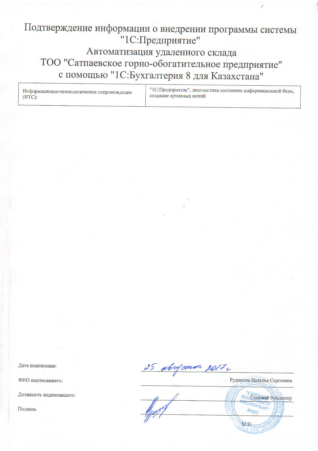 | Внедренное типовое решение: | 1С:Бухгалтерия 8 для Казахстана |