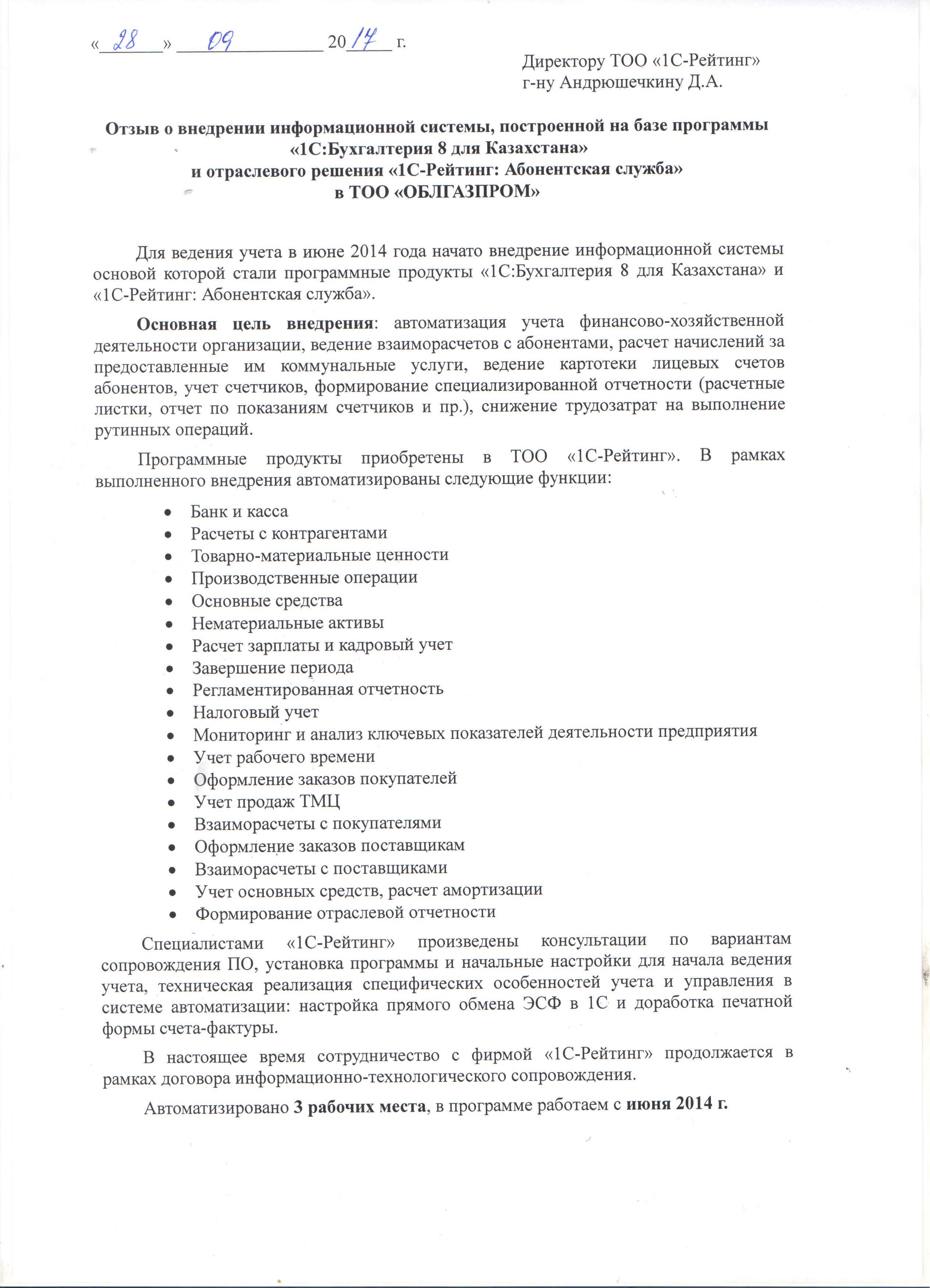 | Внедренные решения: | 1С:Бухгалтерия 8 для Казахстана